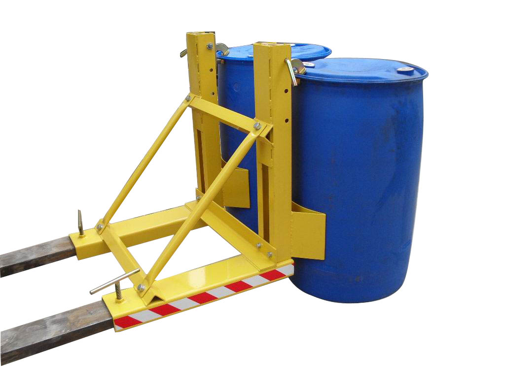 安装于叉车上的夹具会自动抓取锁紧,油桶放下会自动打开的夹具,适合55加仑的钢制桶与塑料油桶。