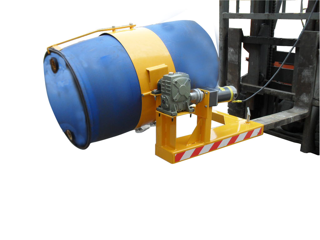 产品说明: ★用于55加仑钢制油桶和200L双层闭口塑料油桶 的搬运,堆放,360度旋转倒料。★采用12V,100W直流电机,可直接在叉车12V电 瓶上使用,也可配电源。★重型设计,结构巧妙,简单使用。